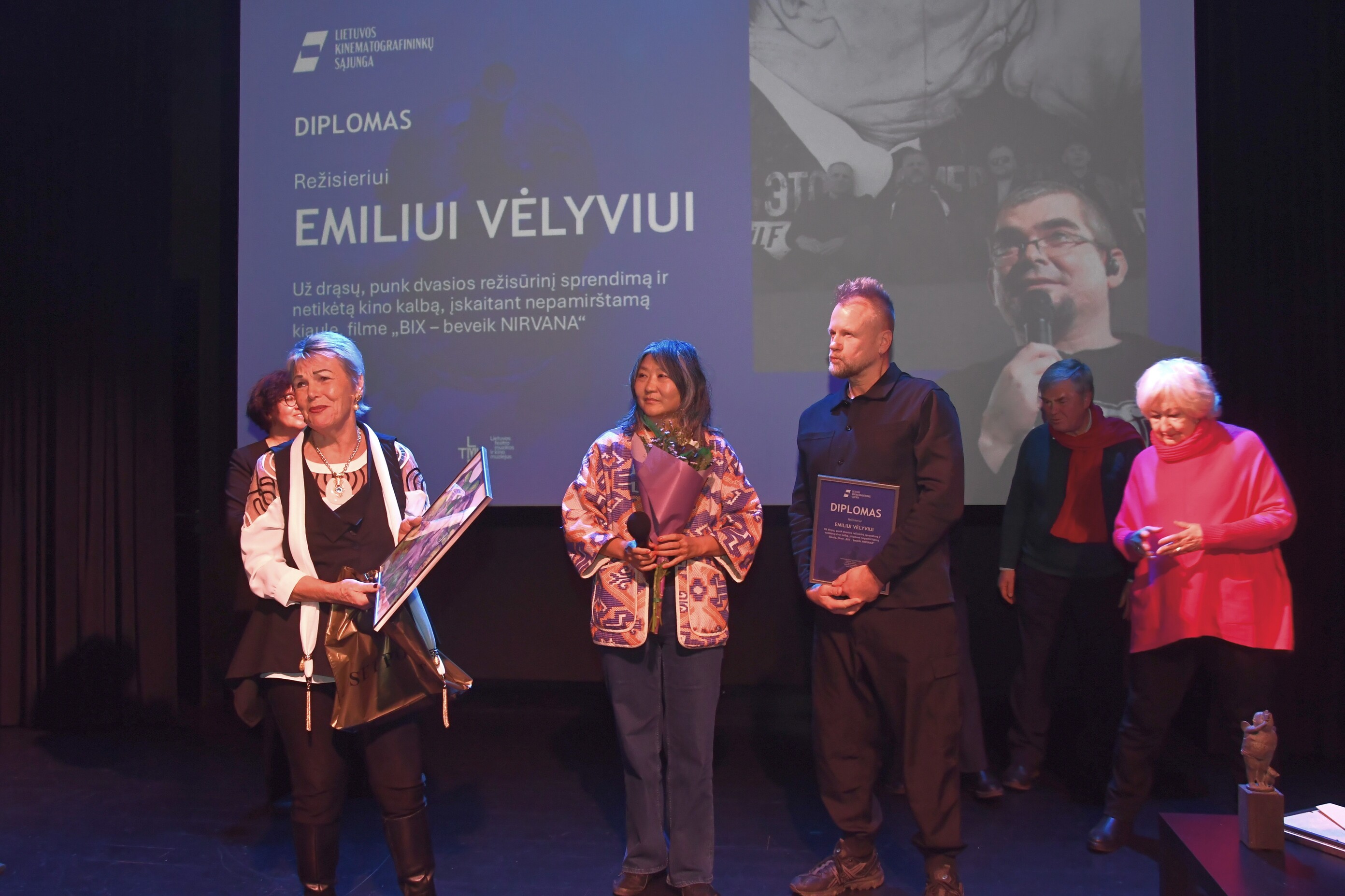 Diplomas skirtas režisieriui Emiliui Vėlyviui už drąsų, punk dvasios režisūrinį sprendimą ir netikėtą kino kalbą, įskaitant nepamirštamą kiaulę, filme „BIX – beveik NIRVANA“.